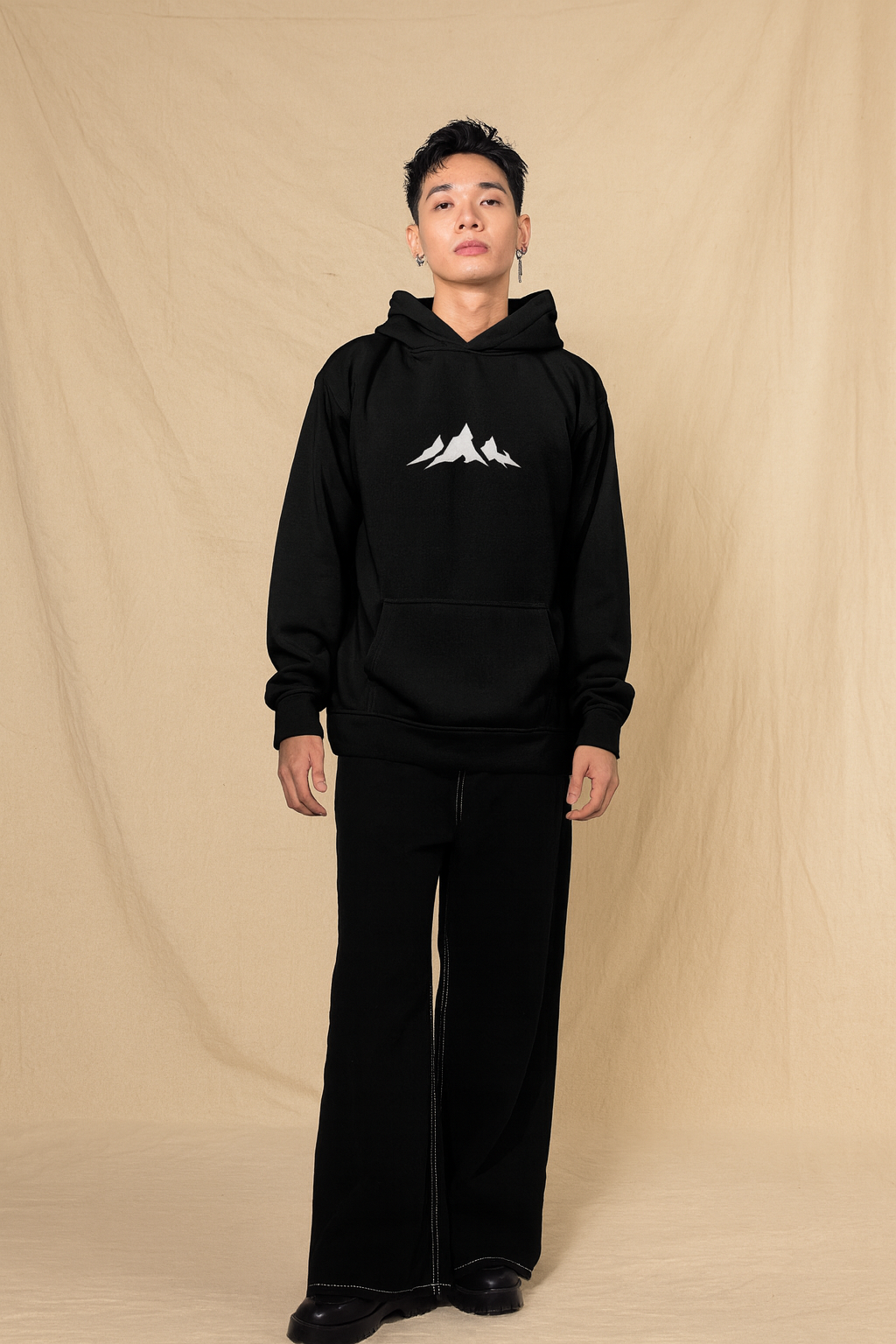 Introducing the Alpine Peaks Organic Hoodie in Black, a unisex piece inspired by the strength and calm of mountain landscapes. Featuring a clean white peak graphic across the chest, this hoodie pairs minimalist design with everyday versatility.
