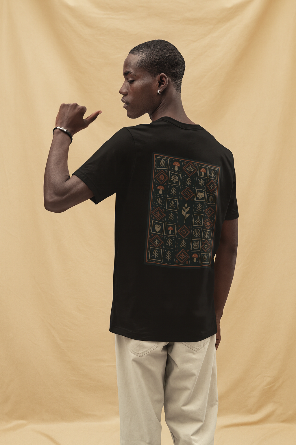 The Aureden Graphic Tee in Black combines a relaxed streetwear silhouette with a conscious approach to design. Crafted from 100% organic cotton, the tee features a bold nature-inspired graphic on the back, bringing modern artistry to a timeless everyday piece. With a soft yet durable 215 GSM weight, it delivers elevated comfort while staying true to sustainable values.